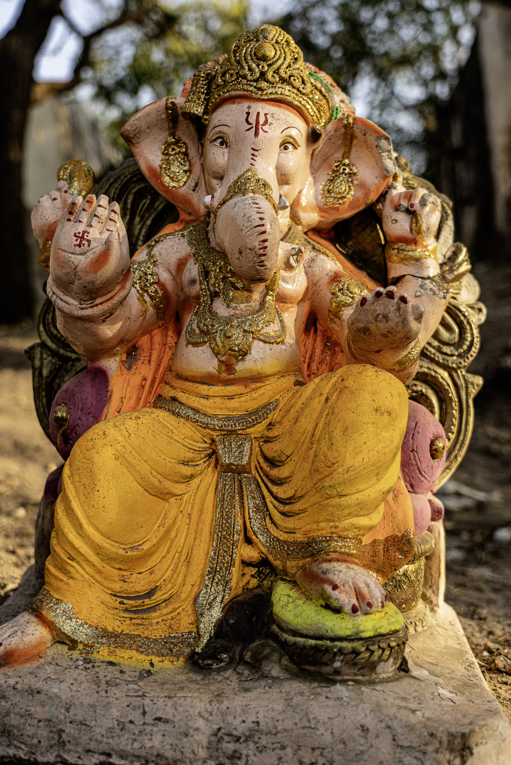 With his right middle finger, which he respectfully brings close to my face, he traces a red dot in the center of my forehead, takes my hands, and recites a mantra. At that precise moment, my whole body vibrates; I feel overwhelmed by an indescribable sensation, as if I had touched, for a split second, nirvana. Composed again from my emotions, we wander through a maze of corridors, passing through a hall where statues with multiple arms, eyes turned toward the sky, seem frozen in time. Worn by years of devotion, prayers, and festivals, the building bears witness to the past. In places, the ceramics, once brightly colored, now show faded, even dull, hues. Far from diminishing its beauty, these marks of time, on the contrary, give it a unique character. Hoping to capture its energy, I slow down, letting my fingers brush the uneven texture of the bas-reliefs. Eyes closed, I feel tiny irregularities, almost like Morse code revealing its secret. Curious, I examine it and detect an oval shape, followed by a smooth space, then a vertical line.