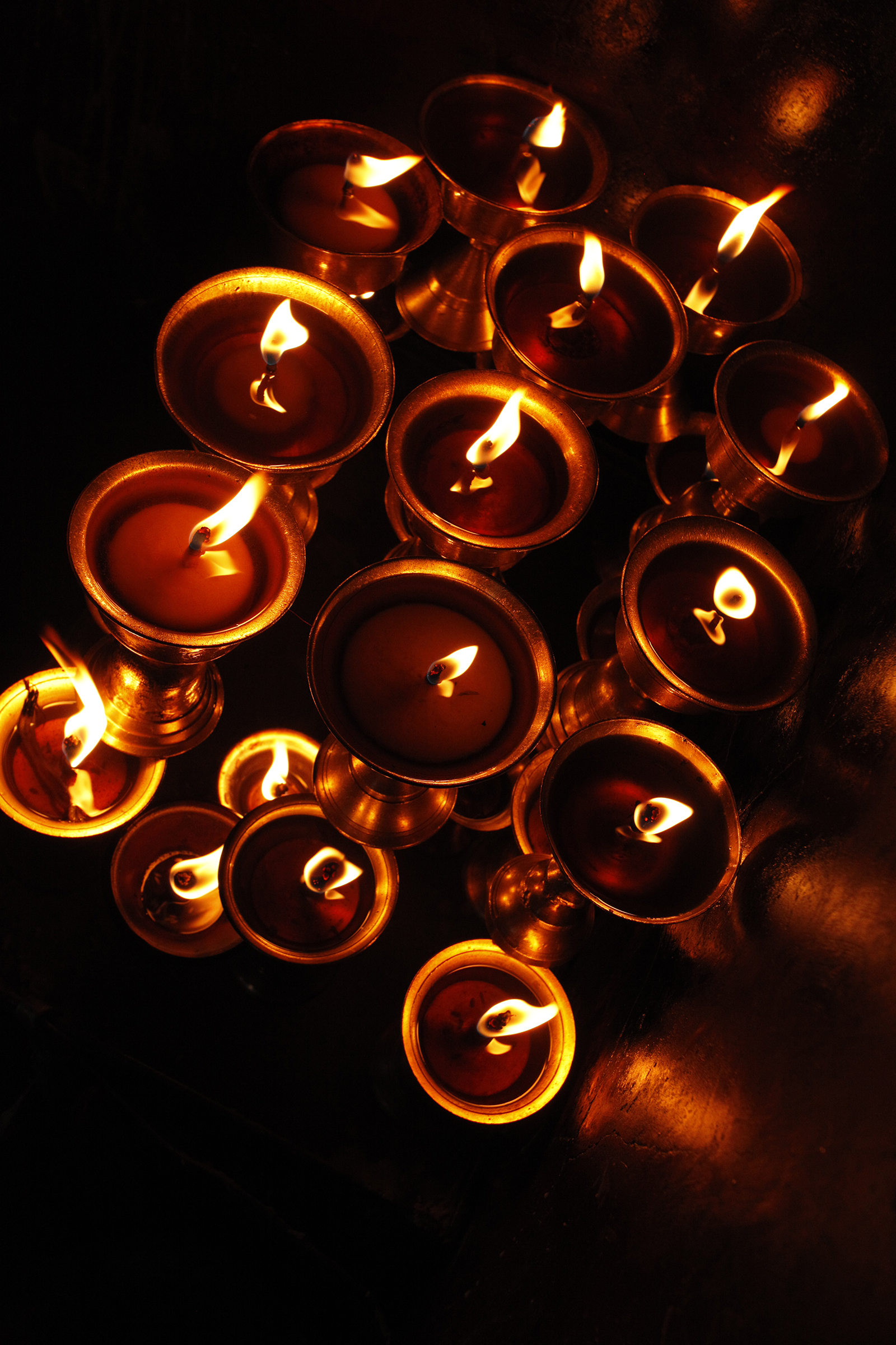In small alcoves, hundreds of candles illuminate icons depicting Hindu deities. Sanjay names them for me, explaining one by one their different roles and powers. I commit to memory the three most important: Brahma, Vishnu, and Shiva.